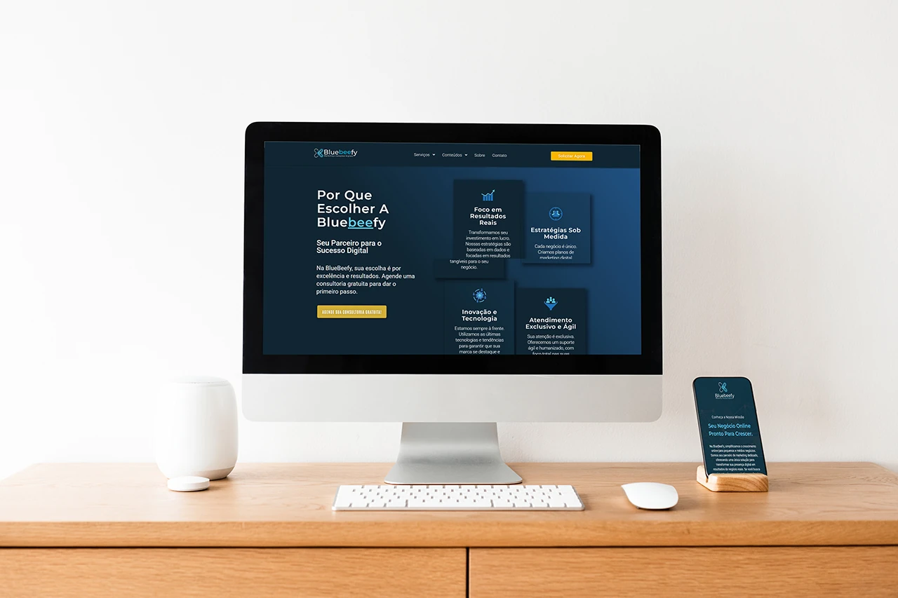 A Bluebeefy constrói soluções digitais estratégicas que, além de encantar, são focadas em conversão e SEO. Mergulhamos no desafio do cliente para gerar resultados e posicionar a marca no topo do Google, como mostram nossos cases de sucesso.